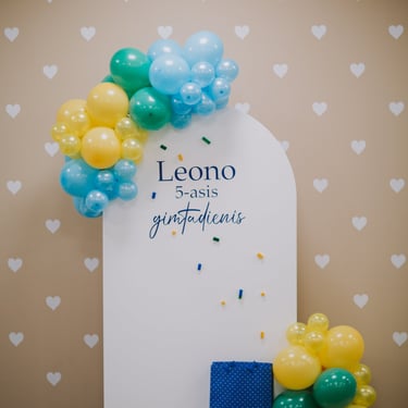 Foto sienelė puošta balionais ir spauda nuo 70€.